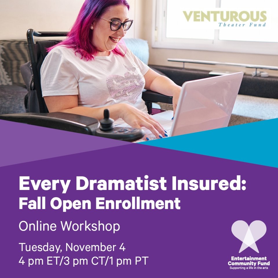 Attention Dramatists! Do you have questions about Medicare? With support from Venturous Theater Fund and hosted by @alifeinthearts, this #FreeWorkshop will cover changes coming next year & help you stay informed so you can choose the right plans for you. RSVP: entertainmentcommunity.org/MedicareOpenEnrollment